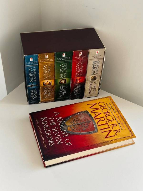 A Song of Ice and Fire is a fantasy epic by George R.R. Martin, set in the fictional continents of Westeros and Essos. It follows the power struggles between noble families for control of the Iron Throne, the looming threat of the supernatural White Walkers, and the rise of exiled royalty. The series weaves together political intrigue, war, and complex characters in a world where honor and betrayal shape the fate of kingdoms.